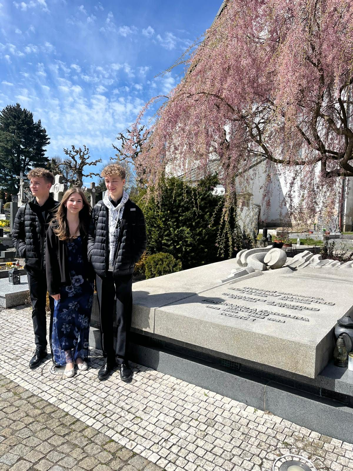 A jak je vidět z fotky – nezůstalo jen u soutěžení. Naši žáci se zastavili i u hrobu Bohuslava Martinů, jehož hudba celý projekt inspiruje.🙂